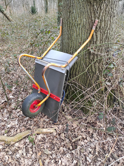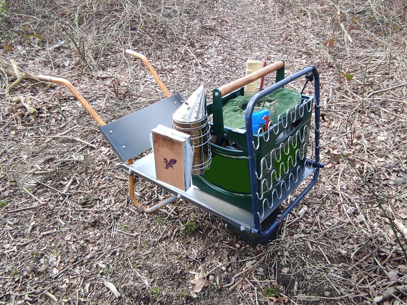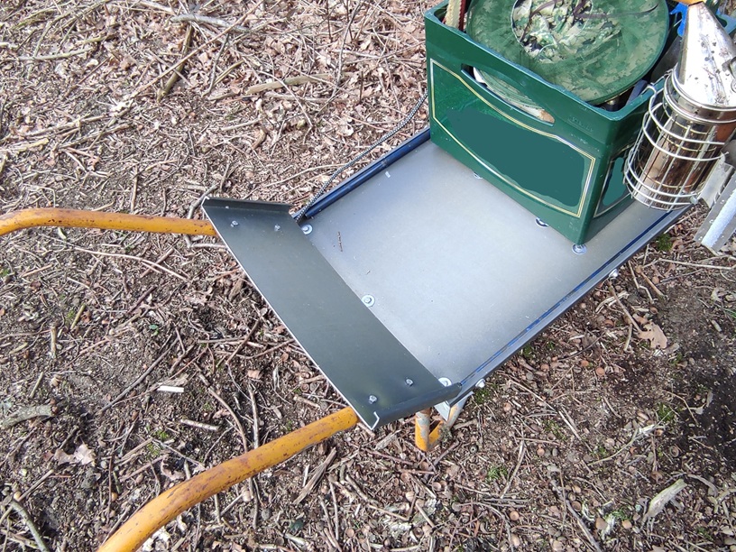 Nicht jeder Bienenstand ist immer mit dem Auto zu erreichen. Hier leistet eine Beutenkarre gute Dienste. Es gibt die Möglichkeit eine Sackkarre entsprechend umzubauen. Die Plattform muss entsprechend vergrößert werden, um auf das Standmaß zu kommen.